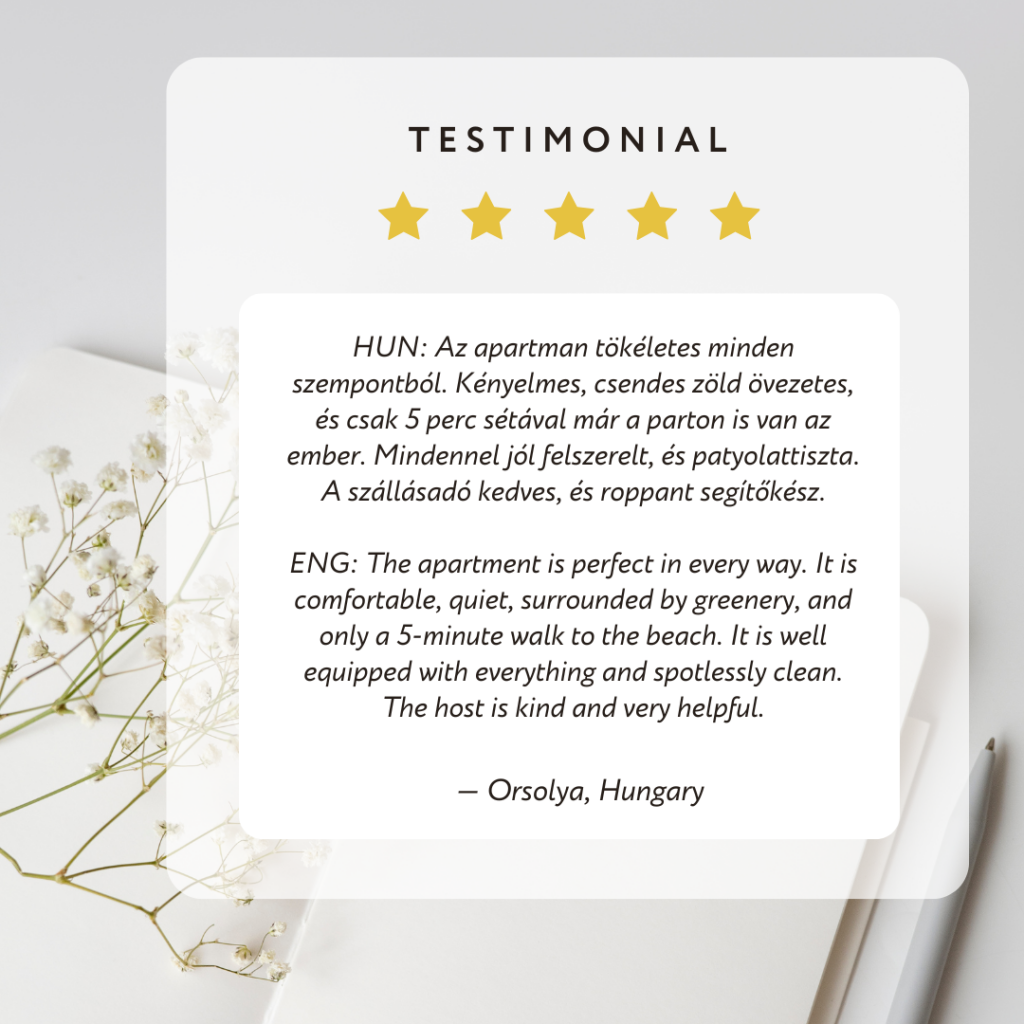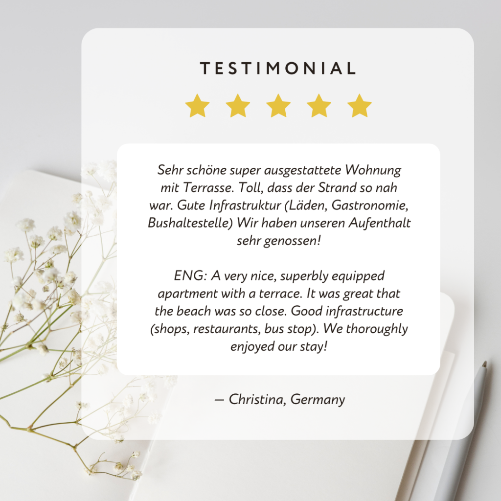 Do you want to know what our guests say about us? We are happy to share testimonials from some of our guests who stayed at the Apartment Barbara Portorož.